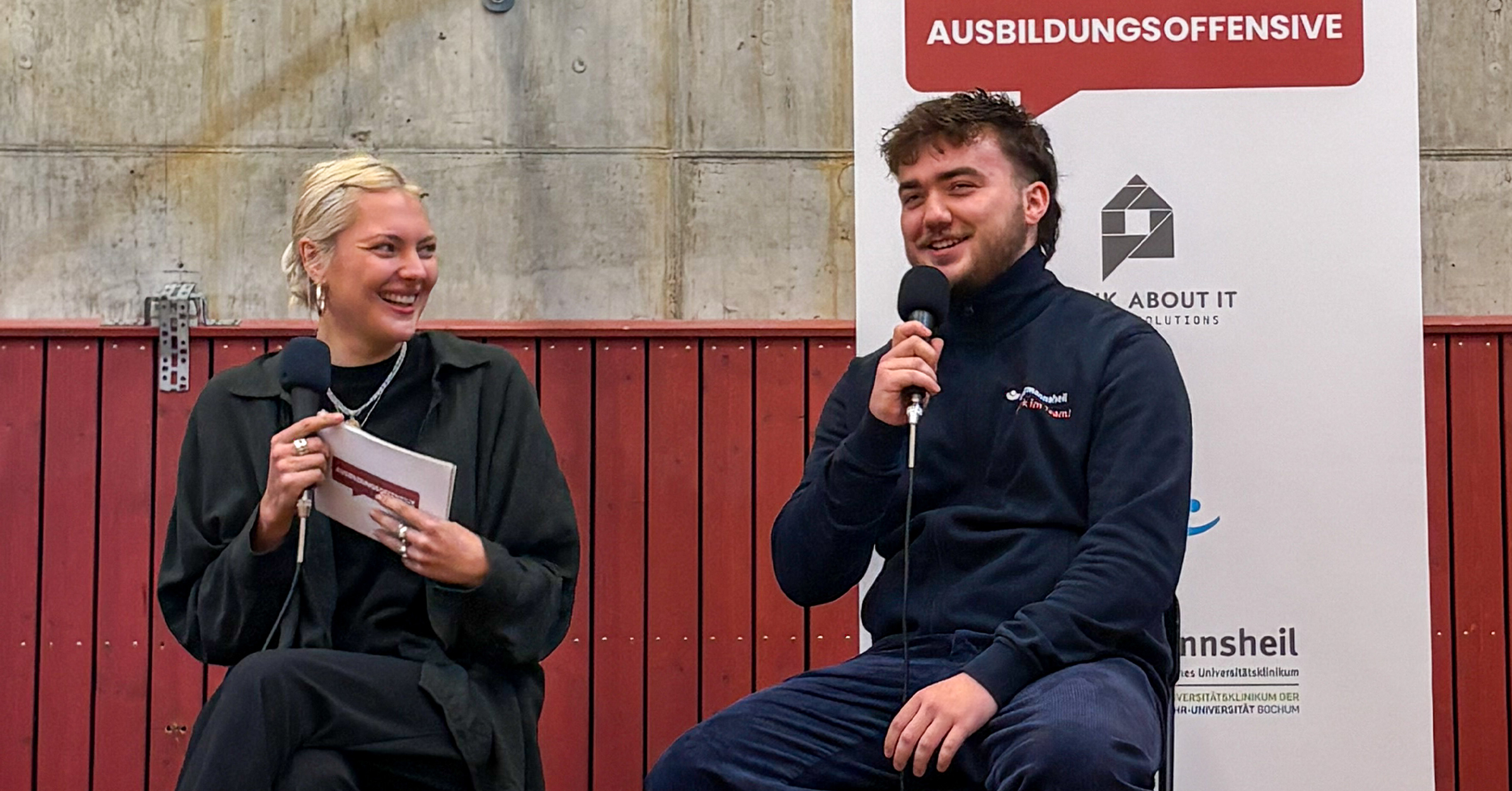 Mit dabei: maxQ, ThinkAboutIT und das Bergmannsheil – drei Ausbildungsbetriebe mit klarer Mission und ganz unterschiedlichen Berufsfeldern. Während beim Bergmannsheil medizinische und pflegerische Berufe im Mittelpunkt standen, gewährte ThinkAboutIT Einblicke in digitale Arbeitswelten – und maxQ brachte insbesondere Gesundheits- und Therapieberufe mit in den Austausch. Dabei ging es nicht nur um Ausbildungsinhalte und Bewerbungsabläufe, sondern auch um Themen wie Teamarbeit, Umgang mit Verantwortung oder Perspektiven nach der Ausbildung.