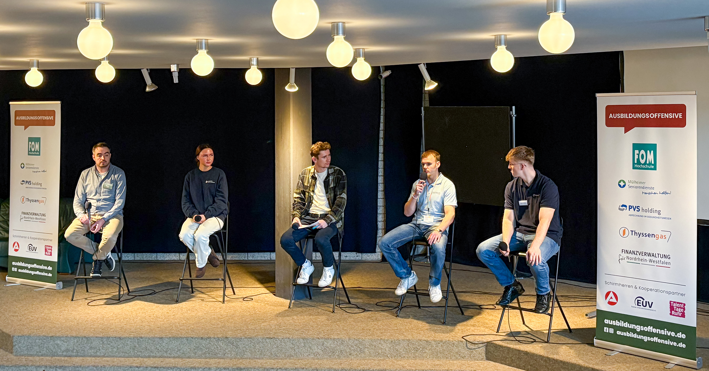 Besonders interessiert zeigten sich viele Schüler an praktischen Fragen: Wie sieht eine typische Woche als Azubi bei den Mülheimer Seniorendiensten aus? Welche Voraussetzungen muss man für ein duales Studium beim Finanzamt? Und wie läuft der Bewerbungsprozess bei Thyssengas ab? In der Fragerunde auf der Bühne wurde nicht nur informiert, sondern auch diskutiert – ganz direkt, ganz persönlich.