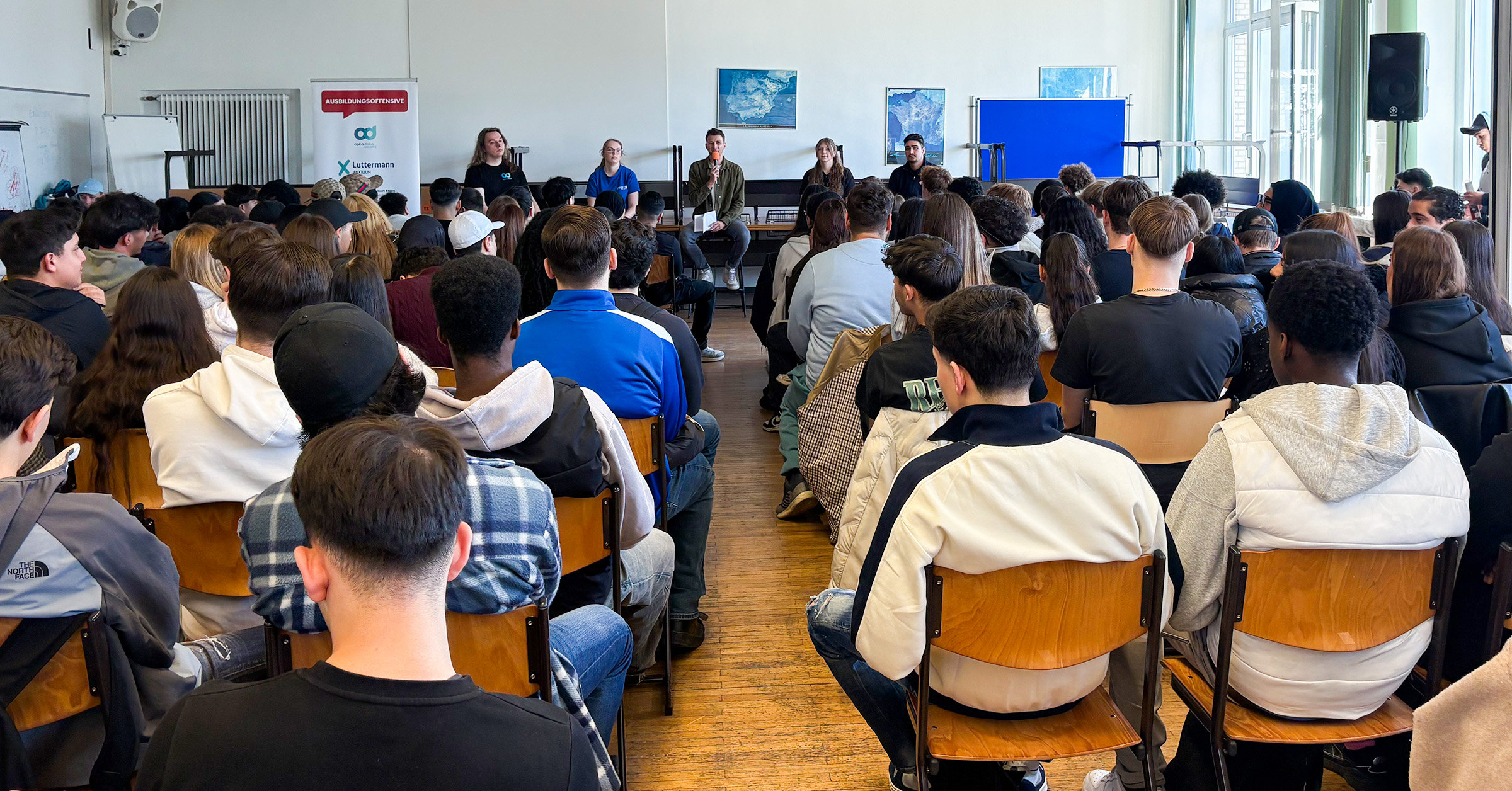 Mit auf der Bühne vertreten waren optadata, die Johanniter, die Ruhrlandklinik sowie Luttermann. Gemeinsam deckten sie unterschiedliche Facetten der Branche ab: von kaufmännischen und IT-nahen Tätigkeiten im Gesundheitssektor über Rettungsdienst und Pflege bis hin zu medizinisch-technischen Berufsbildern und spezialisierten klinischen Arbeitsfeldern. Die Auszubildenden berichteten offen von ihrem Einstieg, vom Bewerbungsprozess und vom Arbeitsalltag zwischen Theorie und Praxis.